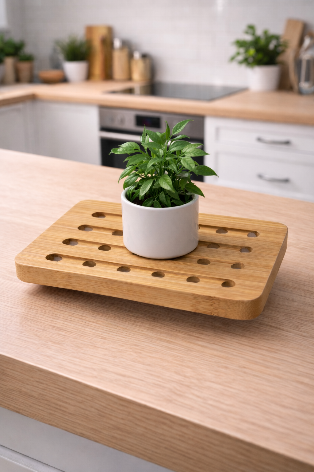 Une touche de bambou personnalisé sur votre table pour acceuillir vos plats chaud ou en déco sur la table avec une plante